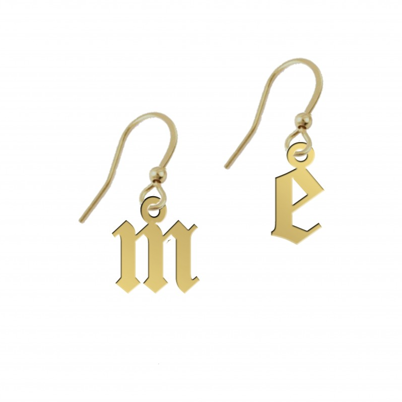 זוג עגילים  תלויים  אופנתיים עם אות באנגלית בסגנון גותי - כתב אנגלי עתיק - (אותיות קטנות)