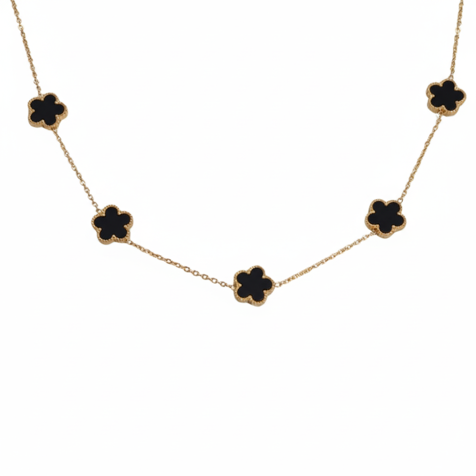 שרשרת עם 5 פרחי תלתן בצבע שחור