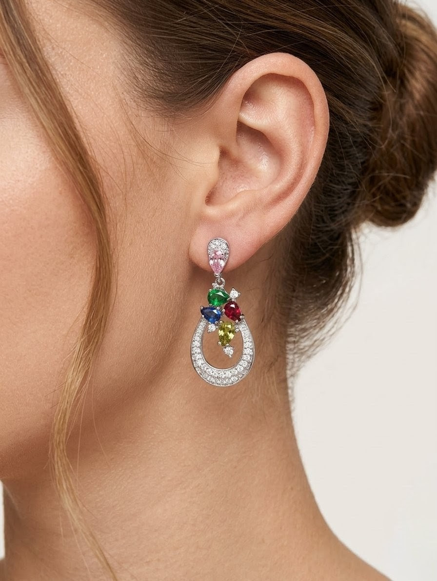 עגילי כסף אופנתיים עם אבנים צבעוניות