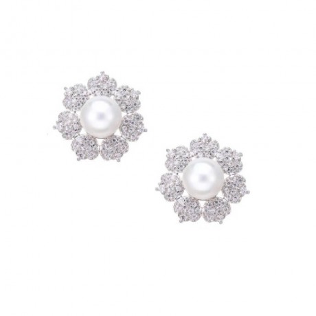 העגילים בציפוי רודיום, בשילוב פנינת זכוכית וזירקונים.