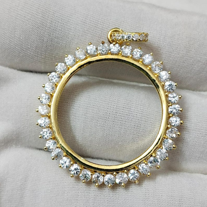 שרשרת ותליון לשיבוץ מטבע -דגם אבנים נוצצות